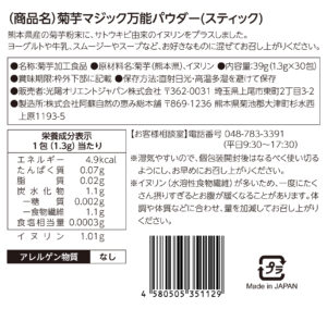 | 原材料名 | 菊芋(熊本県)、イヌリン |